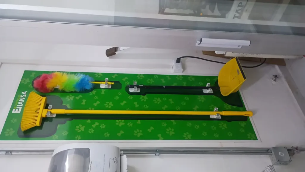 3. Cuidado de las Herramientas: Al tener un soporte dedicado, los cepillos y palas no se deforman ni se ensucian al estar tirados en un rincón.